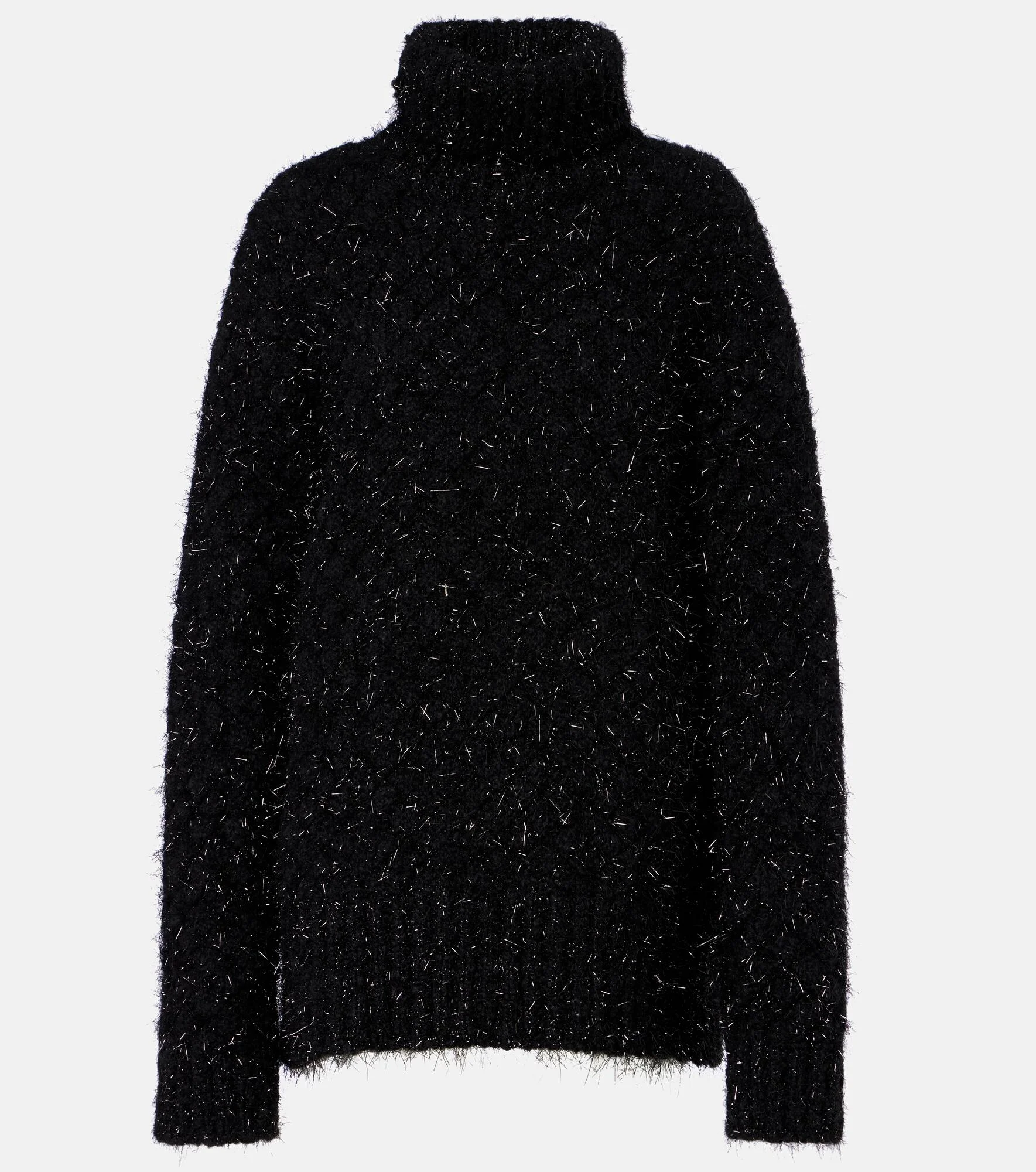 In keeping with Dries Van Noten's innovative designs, this wool-blend turtleneck sweater boasts modern proportions and subtle diamond-shaped details. Thick and chunky, this warm classic is enhanced with glistening, tonal lurex threads. Product Details - Material: 78% wool, 20% polyester, 2% polyamide - Care instructions: dry clean - Made in Belgium - Designer color name: Black - Item color: black - Collar: turtleneck - Cuff: ribbed - Hem: ribbed - Item number: P01106643 Size & Fit - True to size - Dropped shoulders - Designed for a loose fit - Slightly stretchy fabric - Falls below the hip - The model seen in the picture is 178cm-5'10" and wearing a size XS