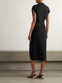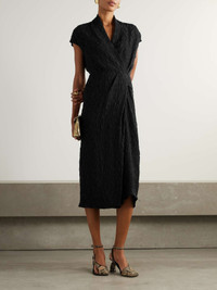 EDITORS'NOTES Dries Van Noten’s midi dress is sophisticated and chic, so it's sure to boost your confidence no matter where you wear it. Made from tactile cloque, it has a wrap-effect design with cap sleeves and pleats for pretty volume. SIZE & FIT Model measurements: - Fits true to size, take your normal size - Designed for a slim fit - Mid-weight, non-stretchy fabric - Model is 180cm/ 5'11" and is wearing a FR 36 - Bust: 85cm/ 33.5" - Waist: 62cm/ 24.5" - Hip: 88cm/ 34.5" DETAILS & CARE - Black cloque - Concealed zip fastening along back - 76% viscose, 24% silk - Dry clean