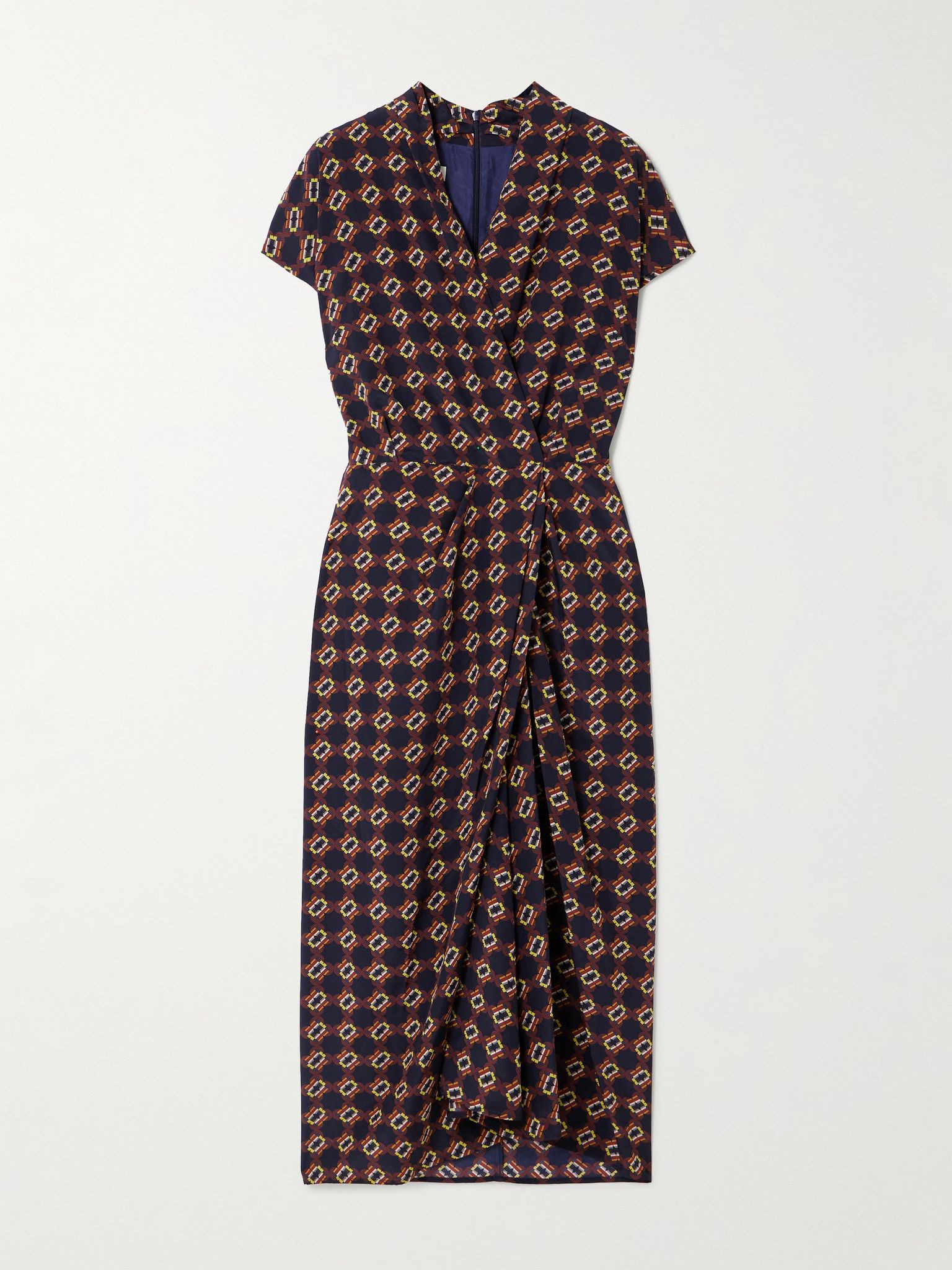 You can always rely on Dries Van Noten's collections to deliver artful print and color. This midi dress is made from silk-crepe that's patterned with eye-catching mosaic motifs and has a wrap-effect bodice and softly pleated skirt. Wear yours with knee boots. Size & Fit - Fits true to size, take your normal size - Designed to be slightly fitted at the bust and waist, loose at the hip - Mid-weight, non-stretchy fabric - Model is 175cm/ 5'9" and is wearing a FR 36 Model measurements: - Bust: 81cm/ 32" - Waist: 62cm/ 24.5" - Hip: 89cm/ 35" Details & Care - Multicolored silk-crepe - Concealed zip fastening along back - 100% silk - Fully lined - Dry clean