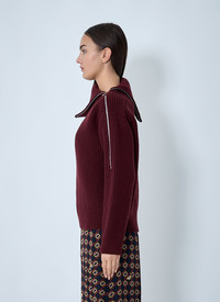 Wool sweater with side zip construction. - Asymmetric neckline - Side zip fastening - Long sleeves - Ribbed - 100% Wool. Dry clean - Color: Red - Code: 252-011235-2707-355