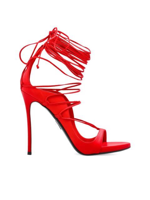 105mm leather heeled sandals Highlights - Black - Front lace-up fastening - Stiletto heel - Open round toe - Stiletto heel - Branded insole Made in Italy Composition Outer: Calf Leather 100% Lining: Calf Leather 100% Sole: Calf Leather 100% SIZE & FIT Measurement HEEL 4.13 in(10.5 cm)