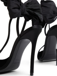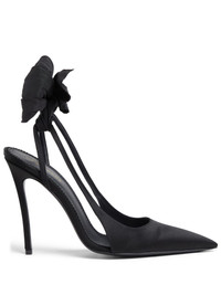 110mm bow-embellished pumps Highlights - Black - Calf leather - Slingback strap - Oversize bow detail - 110mm high stiletto heel - Pointed toe - Branded leather insole - Leather outsole Made in Italy Composition Silk 100%