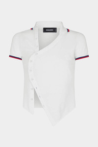 ● PRODUCT ID: S72NC1076S22743100 ● SHORT-SLEEVED COTTON PIQUE TOP ● ASYMMETRIC BUTTON FASTENING ● LOGO EMBROIDERED ON THE LEFT SIDE OF THE CHEST ● RIBBED COLLAR AND CUFFS WITH CONTRASTING STRIPES ● TWIN-NEEDLE STITCHED HEM ● SLIM FIT ● MADE IN ITALY ● FABRIC: 100% COTTON Dsquared2 reinterprets the cotton piquet polo shirt in its own way. Asymmetries and altered volumes undermine the tradition of a garment that integrates well with slim jeans and leather sneakers. And a baseball cap doesn't look bad either.