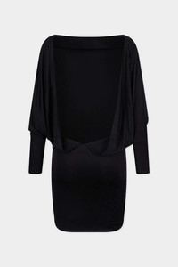 - PRODUCT ID : S75CV0984D20110900 - MADE FROM SHINY VISCOSE JERSEY - WIDE NECK - LONG SLEEVES PRIMARY FABRIC: 100% VISCOSE-RAYON Always a showstopper: this mini dress is crafted from shiny viscose jersey with dramatic batwing sleeves that balance the mini hemline. The glamorous backless design reveals just the right amount of skin as you head out to dinner.