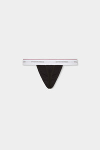 - PRODUCT ID: D8L205550ISA01010 - STRETCH COTTON JERSEY LOW-RISE THONG - JACQUARD ELASTIC WITH LOGO - MADE IN BOSNIA AND HERZEGOVINA - FABRIC: 89% COTTON, 11% ELASTANE Low-waisted thong in stretch cotton jersey characterised by an elastic band with jacquard brand lettering. Internal gusset.