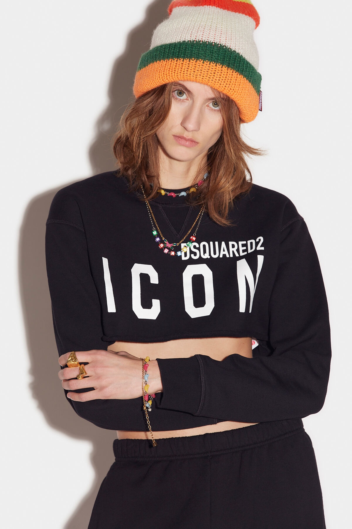 - PRODUCT ID: S80GU0043S25516965 - COTTON CREW-NECK SWEATSHIRT - CROPPED FIT - LONG SLEEVES - RAW-CUT HEM - FRONT "DSQUARED2 ICON" PRINT - MADE IN ITALY MAIN FABRIC: 100% COTTON. SECONDARY FABRIC: 99% COTTON, 1% ELASTANE-SPANDEX THE MODEL IS 5'10' TALL AND WEARS A SIZE S