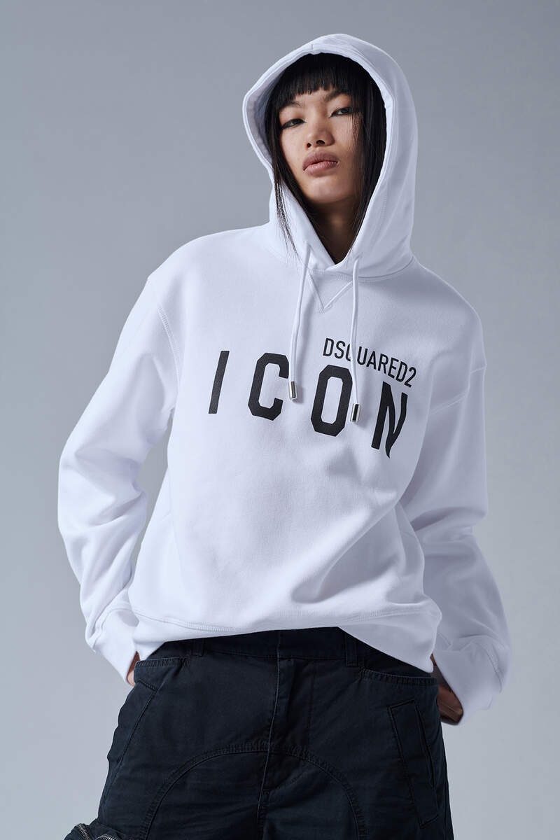 - PRODUCT ID: S80GU0002S25516965 - COTTON SWEATSHIRT - REGULAR FIT - DRAWSTRING HOOD - "DSQUARED2 ICON" FRONT PRINT - MADE IN ROMANIA 100% COTTON This Dsquared2 Icon Cool Sweatshirt - the perfect blend of style and comfort. This fitted top features a bold "DSQUARED2 ICON" print on the front, making it a standout piece in any wardrobe. Made from high-quality materials, this hoodie is soft to the touch and designed to last. Pair it with distressed jeans and slides for a casual, laid-back look. Whether you're hanging out at home or hitting the streets, this hoodie is sure to become a staple in your wardrobe
