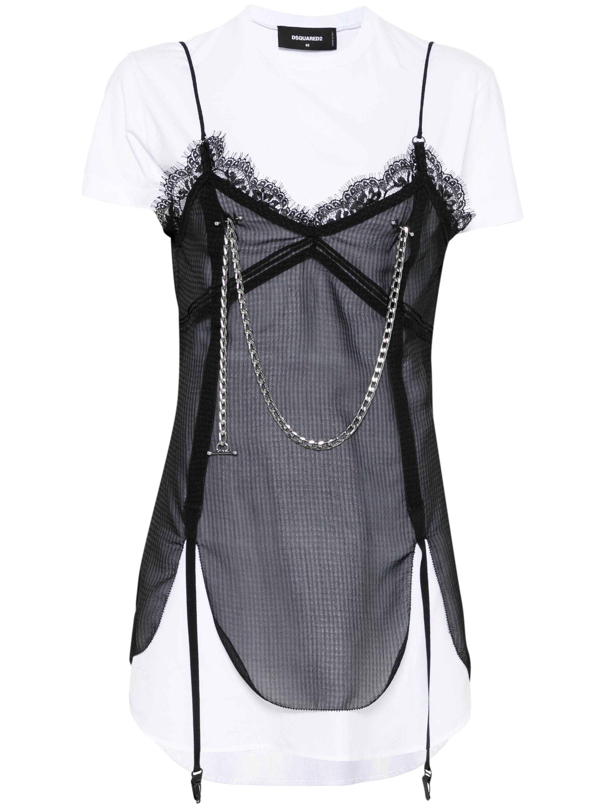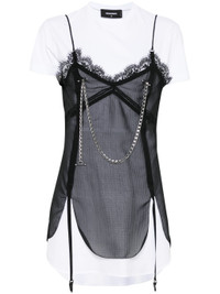 black rear tie fastening chain-link detailing short sleeves panelled design - Color: BLACK/WHITE - Made in: Italy - Designer Style ID: DTN010 S72FV0032 961 Composition and care Cotton: 100.0%, Polyester: 100.0%