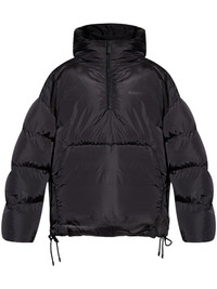logo-embroidered down jacket Highlights - Black/blue - Embroidered logo at the chest - Half front zip fastening - Classic hood - Down-feather filling - Padded design - Drawstring hem Made in Italy Composition Outer: Polyamide 100% Lining: Down 100%, Feather 100%