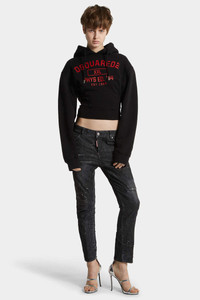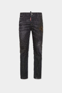 - PRODUCT ID : S72LB0871S30357900 - MADE FROM STRETCH COTTON DENIM - BLACK WASH - SLIM FIT - LOW RISE - FIVE-POCKET STYLE - DISTRESSED FINISH - WHISKERING EFFECTS - SPLATTERED DETAILING - RED DSQUARED2 LABEL - DSQUARED2 PATCH PRIMARY FABRIC: 98% COTTON, 2% ELASTANE-SPANDEX; POCKET LINING: 65% POLYESTER, 35% COTTON; APPLICATION: 100% CALF LEATHER A black wash with distressed detailing, whiskering effects and splatters: these slim-fit jeans bring rugged attitude to off-duty looks. Cut in a flattering slim fit with a low rise.