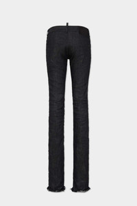- MADE FROM STRETCH COTTON DENIM - BLACK RINSE WASH - BOOTCUT FIT - LOW RISE - FRONT ZIP CLOSURE - FIVE-POCKET STYLE - DSQUARED2 PATCH PRIMARY FABRIC: 98% COTTON, 2% ELASTANE-SPANDEX; SECONDARY FABRIC: 100% CALFSKIN; POCKET LINING: 65% POLYESTER, 35% COTTON; APPLICATION: 100% CALFSKIN A bunchy bootcut silhouette and a black rinse wash: these five-pocket jeans bring edgy attitude to your off-duty wardrobe. A front zip closure accentuates their audacious super-low rise.
