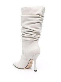 Blair ruched calf boots bright white leather ruched detailing pointed toe slip-on style branded insole high heel Made in Italy Composition Lining: Leather 100% Sole: Leather 100% Outer: Leather 100% SIZE & FIT Measurement CIRCUMFERENCE 13.38 in(34 cm) HEEL 4.33 in(11 cm) HEIGHT 10.62 in(27 cm)