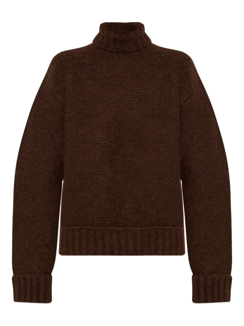 roll-neck sweater Highlights - Chestnut brown - Drop shoulder - Long sleeves - Ribbed cuffs and hem Made in Italy Composition Alpaca Wool 51%, Polyamide 25%, Wool 22%, Elastane 2%
