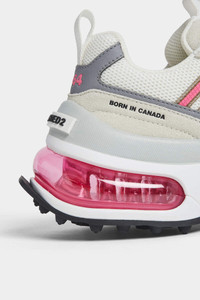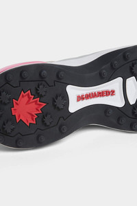 - MADE FROM MESH AND SUEDE LEATHER - NEON SIDE STRIPES - HIKING-STYLE LACES - NEON BUBBLE DETAIL - PULL TABS - RUBBER DSQUARED2 PATCH - SIDE BORN IN CANADA PRINT - BACK 1964 PRINT UPPER: 50% CALFSKIN, 35% POLYESTER, 15% POLYURETHANE; LINING: 80% POLYESTER, 20% CALFSKIN; SOLE: 65% POLYURETHANE, 25% RUBBER, 10% PVC The chunky trainer is here to stay. This running style marks each stride with neon side stripes and a cushioned bubble detail. Complete with signature Dsquared2 branding and hiking-style laces for an adventurous touch.