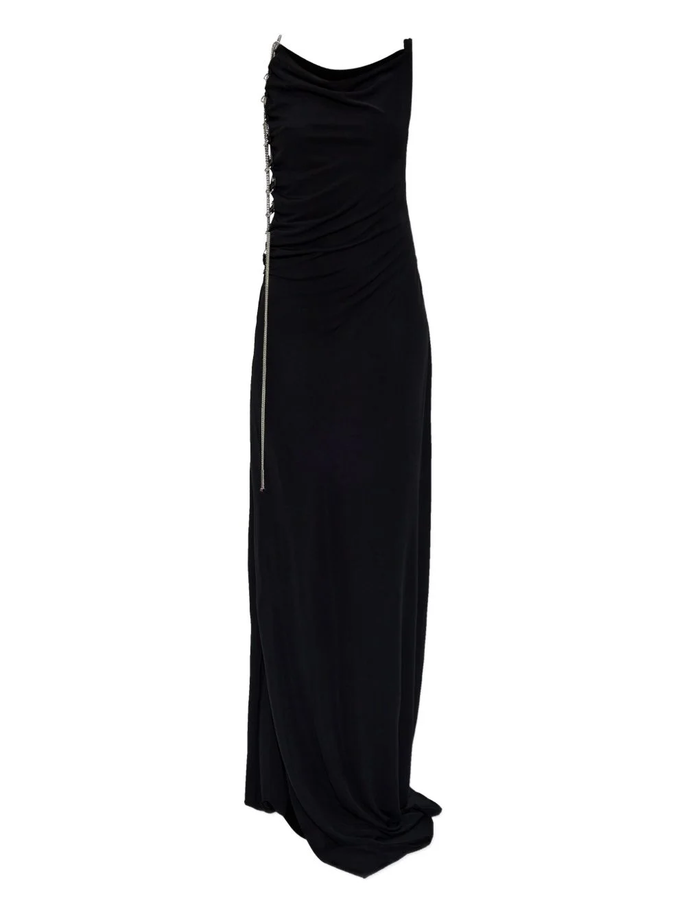 chain-detail maxi dress Highlights - Black - Chain embellishment - Draped detail - Sleeveless - Open back - Slit detail Made in Italy Composition Viscose 100% Washing instructions Read Manufacturer Guidelines