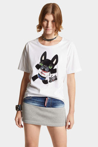- PRODUCT ID: S75GD0440S24668100 - COTTON JERSEY T-SHIRT - FLOCKED PATTERN PRINT ON THE FRONT - RIB KNIT NECKLINE - TWO NEEDLE STITCHING - FIT: BOXY - MADE IN ITALY FABRIC 1: 100% COTTON FABRIC 2: 100% COTTON A fierce bull-dog becomes the mascot of this cotton jersey T-shirt. Printed on the front it becomes a signature element of a garment that never wanes.