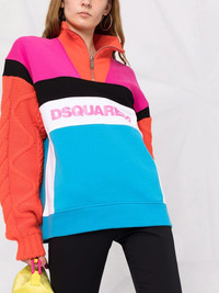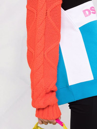 colour-block sweatshirt Merge your favourite knit with your best sweatshirt and this is what you're left with. Printed with logo lettering on the front, this top from Dsquared2 has contrasting knitted sleeves. Your casual looks are about to be elevated. Made in Italy Composition Cotton 100% SIZE & FIT Model measurements Height 5 ft 9 in(1.75 m) Bust/Chest 31.88 in(81 cm) Hips 34.64 in(88 cm) Waist 22.83 in(58 cm) FittingInformation This piece fits true to size. We recommend you get your regular size Cut for a loose fit Made with a mid-weight fabric Washing instructions Dry Clean Only