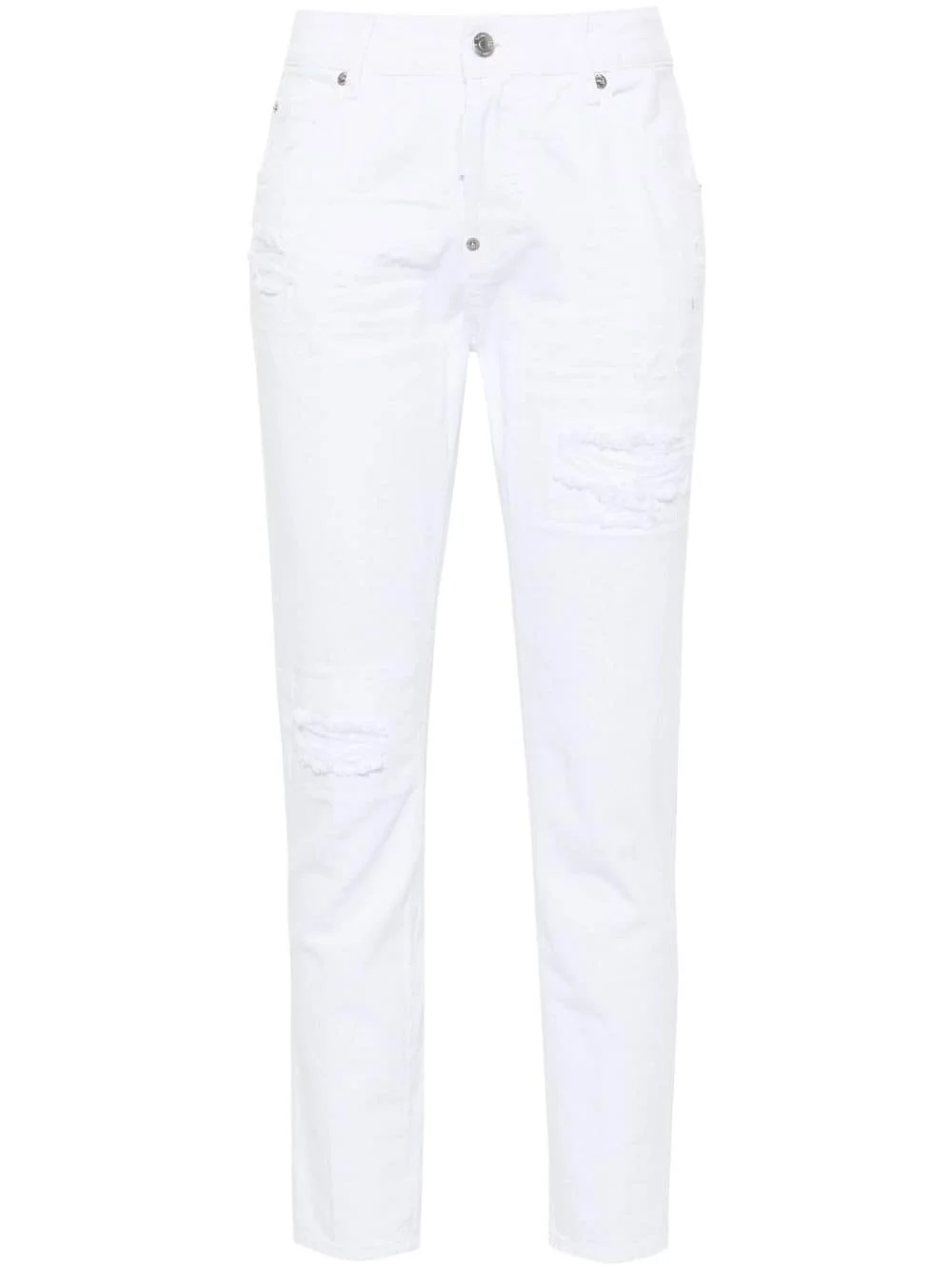 Cool Girl low-rise slim-fit jeans Highlights - White - Cotton - Denim - Distressed finish - Ripped detailing - Logo patch to the rear - Logo-engraved silver-tone hardware - Slim cut - Low-rise - Button fly fastening - Belt loops - Classic five pockets - Cropped leg Made in Italy Composition Outer: Cotton 100% Lining: Cotton 100% SIZE & FIT Model measurements Height 5 ft 10 in(1.78 m) Bust/Chest 31.49 in(80 cm) Hips 35.03 in(89 cm) Waist 23.62 in(60 cm) FittingInformation Designed for a slim fit, these jeans offer a close fit at the waist and sit just away from the leg Sturdy and hard-wearing, this denim piece offers no stretch This piece fits true to size – take your usual size