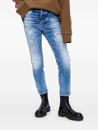 cotton jeans Highlights - Powder blue - Front button fastening - Classic five pockets - Ripped detailing - Tapered leg Made in Italy Composition Cotton 99%, Elastane 1%