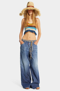 - PRODUCT ID : S73LA0299S30341470 - MADE FROM STRETCH COTTON DENIM - LIGHT BLUE WASH - WIDE LEG - FIVE-POCKET STYLE - WHISKERING EFFECTS - RED DSQUARED2 LABEL - EMBROIDERED "SUMMER LOVERS" LETTERING PRIMARY FABRIC: 98% COTTON, 2% ELASTANE-SPANDEX, POCKET LINING: 65% POLYESTER, 35% COTTON Flaunting a slouchy fit and a classic blue wash, these five-pocket jeans deserve a spot in your off-duty summer edit. Whiskering effects give them a cool worn-in look. Pair with slides, sneakers or heels to suit the occasion.