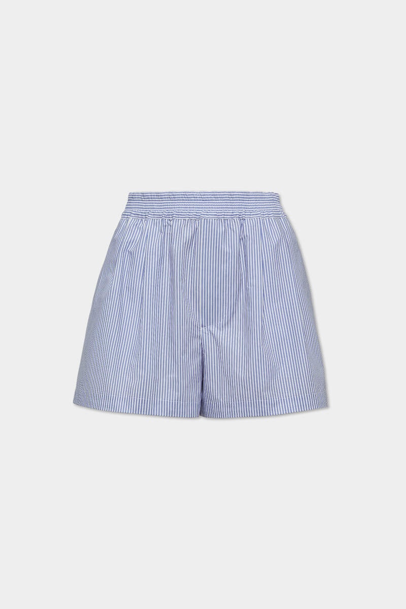 - PRODUCT ID : S73MU0241D35284001S - MADE FROM COTTON POPLIN - CLASSIC PINSTRIPES - ELASTICATED WAIST - SIDE POCKETS - BACK WELT POCKET - EMBROIDERED DSQUARED2 LETTERING 100% COTTON Get the pyjama look in these striped shorts, borrowed from the world of menswear and transformed into an emblem of nonchalant style. Made from breezy cotton poplin with a comfy elasticated waist, they're embellished with embroidered DSQUARED2 lettering on the back.
