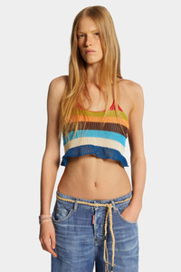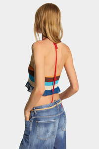 - PRODUCT ID : S73HA0171D13128961 - MADE FROM COTTON - OPENWORK STITCH - STRIPED DESIGN - HALTERNECK TIES - EMBROIDERED DSQUARED2 LETTERING 100% COTTON A striped pattern in vibrant sunset hues and a breezy openwork stitch: this knitted halterneck top is the epitome of summer-chic. Styled with a flounce hem that's raised at the front and embroidered with Dsquared2 lettering on the back.