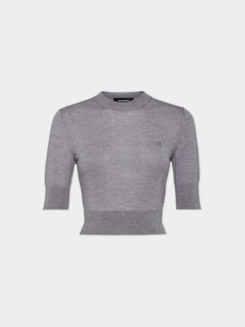 - MADE FROM VIRGIN WOOL - CROPPED FIT - CREW NECK - SHORT SLEEVES - RIBBED TRIMS - RAISED D2 LOGO PRIMARY FABRIC: 100% VIRGIN WOOL Elegance lies in simplicity and this short-sleeved jumper is proof, knitted from pure virgin wool. Styled with a cheeky cropped fit, it's branded with a tonal D2 logo on the chest: subtle yet distinctive in perfect proportions.