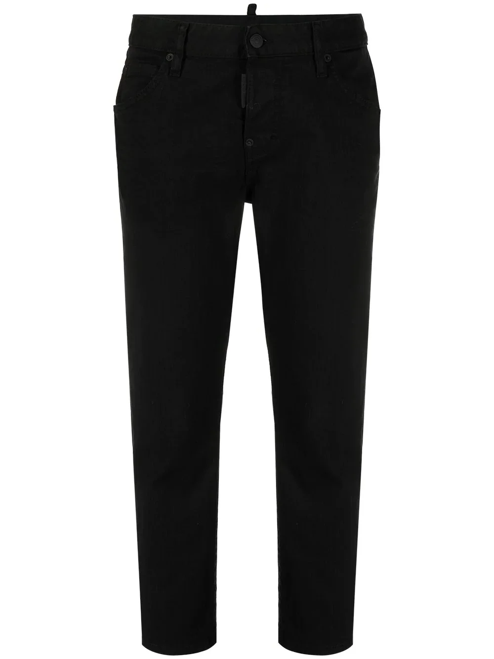 cropped low-rise jeans Shop for the crop. These black cropped jeans from DSQUARED2 deserve pride of place in your denim drawer. Make space for them. Made in Italy Composition Outer: Cotton 98%, Spandex/Elastane 2% Lining: Cotton 100% SIZE & FIT Model measurements Height 5 ft 10 in(1.78 m) Bust/Chest 31.88 in(81 cm) Hips 35.82 in(91 cm) Waist 24.4 in(62 cm) FittingInformation This piece fits true to size. We recommend you get your regular size Cut for a slim fit Made with a mid-weight fabric Washing instructions Machine Wash