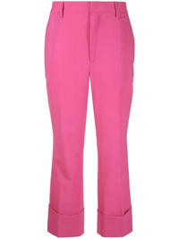 cropped tailored trousers deep pink cropped high waist concealed front fastening belt loops two side slit pockets two rear welt pockets Made in Italy Composition Outer: Polyester 54%, Virgin Wool 44%, Spandex/Elastane 2% Lining: Cupro 100% SIZE & FIT Model measurements Height 5 ft 10 in(1.78 m) Bust/Chest 30.31 in(77 cm) Hips 36.61 in(93 cm) Waist 24.8 in(63 cm) FittingInformation This piece fits true to size. We recommend you get your regular size Designed to be fitted at the waist and hips, loose over the leg Made with a mid-weight stretch fabric Washing instructions Dry Clean Only