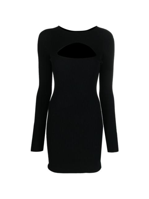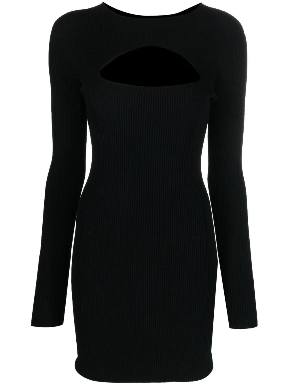 cut-out rib-knit minidress black ribbed knit cut-out detailing round neck long sleeves bodycon design thigh-length Made in Italy Composition Viscose 83%, Polyester 17% SIZE & FIT Model measurements Height 5 ft 11 in(1.8 m) Bust/Chest 31.49 in(80 cm) Hips 36.61 in(93 cm) Waist 24.4 in(62 cm) FittingInformation Designed for a close fit throughout Made with a midweight knit, this piece offers some stretch This piece fits true to size – take your usual size Washing instructions Hand Wash