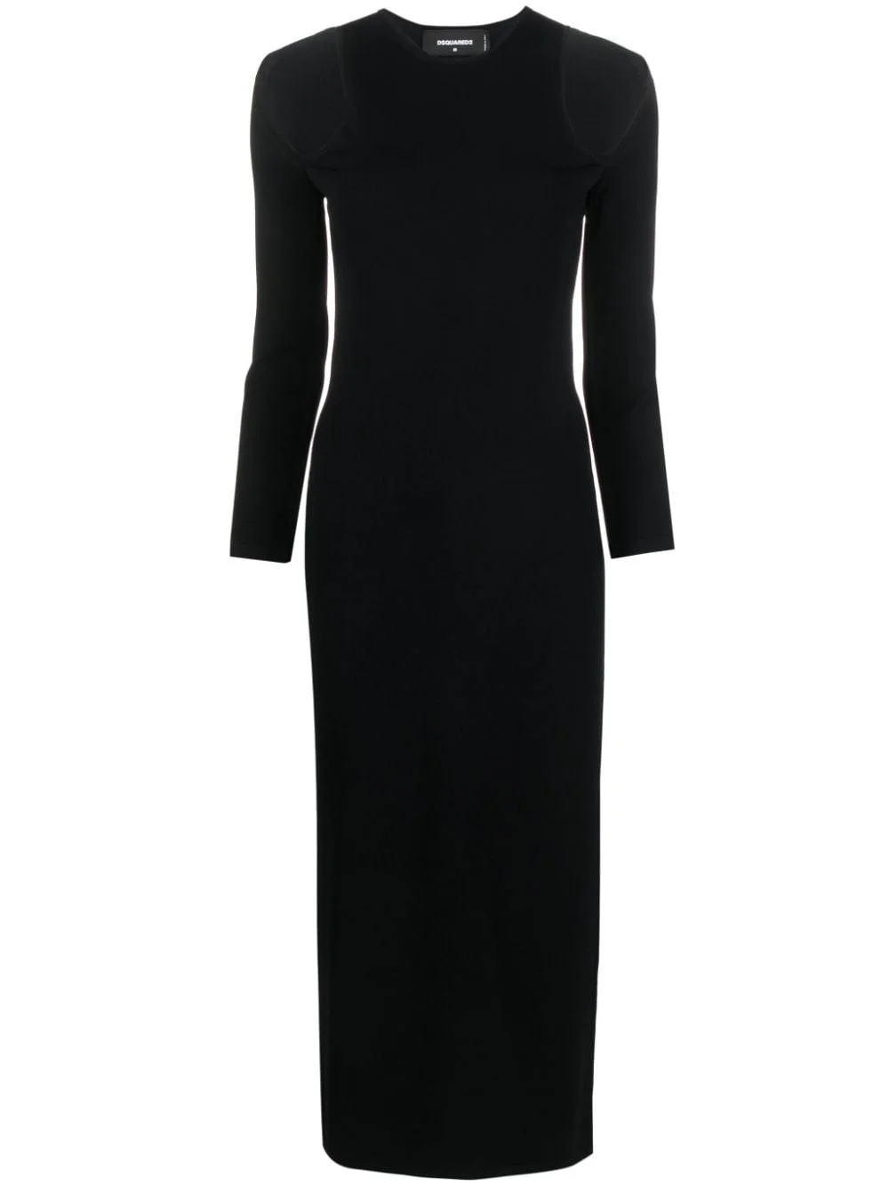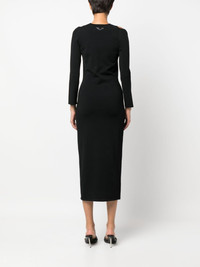 cut-out ribbed-knit midi dress Highlights - Jet black - Ribbed knit - Stretch-design - Cut-out detailing - Gold-tone logo plaque - Round neck - Long sleeves - Straight hem - Mid-length Made in Italy Composition Viscose 83%, Polyester 17% SIZE & FIT Model measurements Height 5 ft 11 in(1.8 m) Bust/Chest 33.07 in(84 cm) Hips 37 in(94 cm) Waist 25.59 in(65 cm) FittingInformation Designed for a close fit throughout Made from a midweight stretch fabric, this piece offers elasticity and flexibility when worn This piece fits true to size – take your usual size