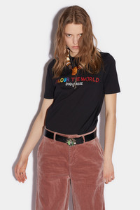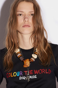 - PRODUCT ID: S72GD0396S24387900 - COTTON JERSEY T-SHIRT - MULTICOLOURED "COLOUR THE WORLD" AND "DSQUARED2” LETTERING ON THE FRONT - MADE IN ITALY 100% COTTON THE MODEL IS 5'10' TALL AND WEARS A SIZE S STAND OUT FROM THE PARTY CROWD IN THIS STRIKING BLACK T, EMBLAZONED WITH DSQUARED2'S STATEMENT BRANDING ON THE FRONT, WITH THE WORDS 'COLOUR THE WORLD' AND 'DSQUARED2.' WEAR WITH ANY JEANS AND ACCESSORISE WITH PERSONALISED JEWELLERY FOR AN EFFORTLESSLY STYLISH YET RELAXED LOOK.