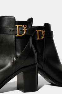 - PRODUCT ID: ABW0161015000012124 - LEATHER ANKLE BOOTS - PULL TAB - STRAP WITH GOLD METAL "D2" DETAIL - HEEL HEIGHT: 7 CM - MADE IN ITALY UPPER: 100% CALFSKIN. SOLE: 100% CALFSKIN. SOLE: 100% REAL LEATHER.