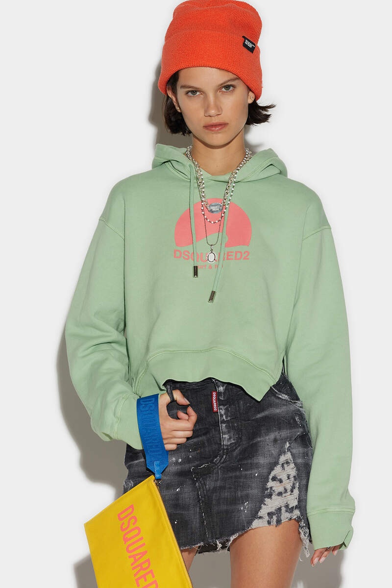 - PRODUCT ID: S75GU0450S25030636 - COTTON SWEATSHIRT - CROPPED FIT - DRAWSTRING HOOD - SIDE SLITS - FRONT "DSQUARED2 SURF & FUN" PRINT - MADE IN ITALY PRIMARY FABRIC: 100% COTTON. SECONDARY FABRIC: 94% COTTON, 6% ELASTANE-SPANDEX Side cuts and a cropped yet oversize silhouette make this hoodie the perfect go-to for your off-duty weekend stylings. Slide it on with one of our distressed denim numbers or shorts.
