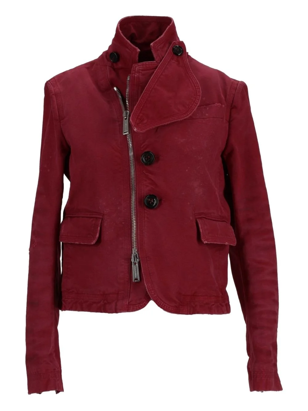 D2 zip-fastening button jacket Highlights - Dark red - Zip fastening - Button closure - Asymmetrical collar - Front pocket - Zip cuffs Imported Composition Cotton 100% Washing instructions Read Manufacturer Guidelines