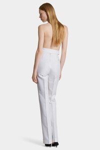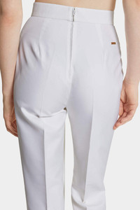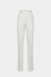 - MADE FROM A COTTON SILK BLEND - FRONT DARTS - SIDE HIDDEN ZIP CLOSURE - TURN-UP CUFFS - METAL LOGO PLAQUE PRIMARY FABRIC: 68% COTTON, 32% SILK Keep it chic in these silk-cotton trousers, flaunting a sculpting high-waisted fit with a relaxed leg, turn-up cuffs and hidden zip closure. Team with barely-there stiletto sandals for a sublime evening look.
