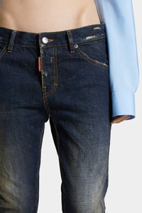 - PRODUCT ID : S75LB1075D30011470 - MADE FROM STRETCH COTTON DENIM - DARK BLUE WASH - SLIM FIT - LOW RISE - FIVE-POCKET STYLE - DISTRESSED FINISH - DUSTY EFFECT - RED DSQUARED2 LABEL - DSQUARED2 PATCH