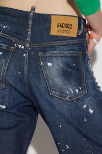 - PRODUCT ID: S75LB0701S30342470 - STRETCH COTTON DENIM JEANS - BOOTCUT FIT - USED WASH WITH DESTROYED DETAILING AND COLOURED SPLATTERS - CONCEALED BUTTON FLY - LOGO TAG ON THE FLY - FIVE-POCKET STYLE - REAR LOOP - REAR "64DSQ2” PATCH - MADE IN ITALY PRIMARY FABRIC: 98% COTTON, 2% ELASTANE-SPANDEX. POCKET LINING: 65% POLYESTER, 35% COTTON Make a bold statement with these Dsquared2 women's jeans. The dark wash jeans feature distinctive slashes and paint splatters, as well as a high-waisted and low-crotched silhouette. These jeans are sure to make a statement no matter how you style them. To embrace the edgy, rebellious vibe of these jeans, try pairing them with a leather jacket and combat boots. For a more laid-back, casual look, try pairing them with a sweater and trainers.