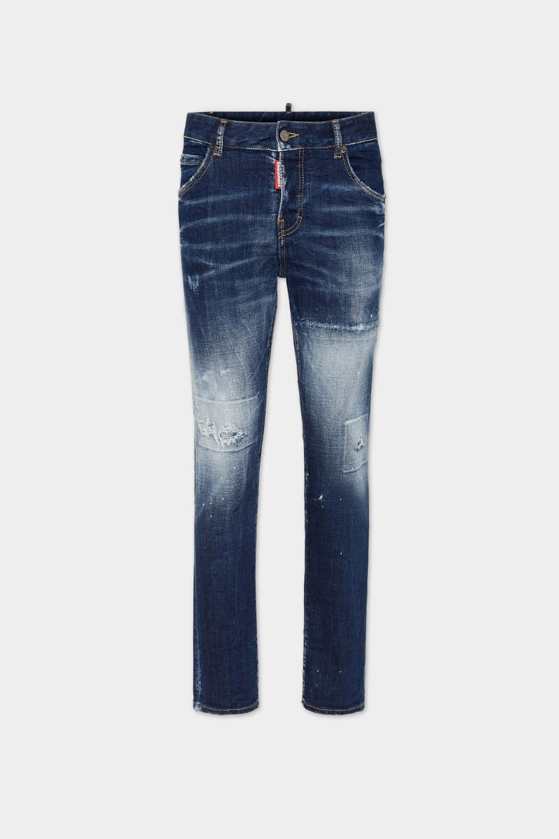 - MADE FROM STRETCH COTTON DENIM - DARK BLUE WASH - SLIM FIT - LOW RISE - FIVE-POCKET STYLE - DISTRESSED FINISH - WHISKERING EFFECTS - RED DSQUARED2 LABEL - DSQUARED2 PATCH PRIMARY FABRIC: 99% COTTON, 1% ELASTANE-SPANDEX; POCKET LINING: 65% POLYESTER, 35% COTTON A dark wash with authentic distressed detailing: these slim-fit jeans are an all-round essential that go with everything. Dress them down in the day with a flannel shirt or throw on a biker jacket for an easy evening look.
