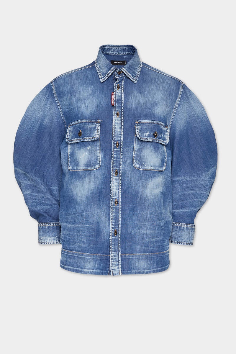 - PRODUCT ID: S75DL0883S30341470 - STRETCH DENIM SHIRT - WASH USED WITH WEAR-AND-TEAR - TWO FLAPPED PATCH POCKETS - SLANT-CUT BROAD SLEEVES - LOGOED LABEL SEWN ON THE PLACKET - FIT: OVERSIZE - BUTTON FASTENING - STRAIGHT POINT COLLAR - YOKE CON PLACKET ON THE BACK - STRAIGHT HEM FABRIC: 99% COTTON, 1% ELASTANE It is the detail that makes the difference. Such is the case with this oversized denim shirt featuring a masculine fit, with very wide sleeves. The reimagined country style is easy to wear for casual or leisure time. The advice is to pair it with jeans or stretch leggings and cowboy boots.