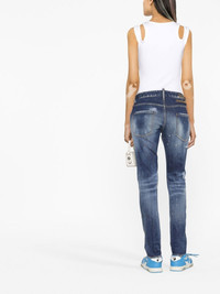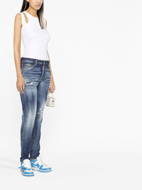 distressed-finish denim jeans Dsquared2's contemporary approach to design is reflected on this pair of denim jeans through distressed-effect detailing and ripped detailing, creating a distinctive design. Imported Composition Lining: Polyester 65%, Cotton 35% Outer: Cotton 99%, Spandex/Elastane 1% SIZE & FIT Model measurements Height 5 ft 10 in(1.77 m) Bust/Chest 32.67 in(83 cm) Hips 35.43 in(90 cm) Waist 23.62 in(60 cm) FittingInformation This piece fits true to size. We recommend you get your regular size Cut for a slim fit Made with a mid-weight fabric Washing instructions Machine Wash
