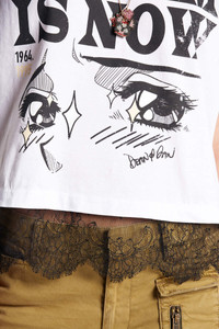 - PRODUCT ID: S75GD0364S23009100 - COTTON T-SHIRT - REGULAR FIT - CREW NECK - LACE HEM DETAIL - FRONT PRINT - MADE IN ITALY PRIMARY FABRIC: 100% COTTON. SECONDARY FABRIC: 100% COTTON. DETAIL: 45% POLYAMIDE-NYLON, 46% VISCOSE-RAYON
