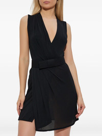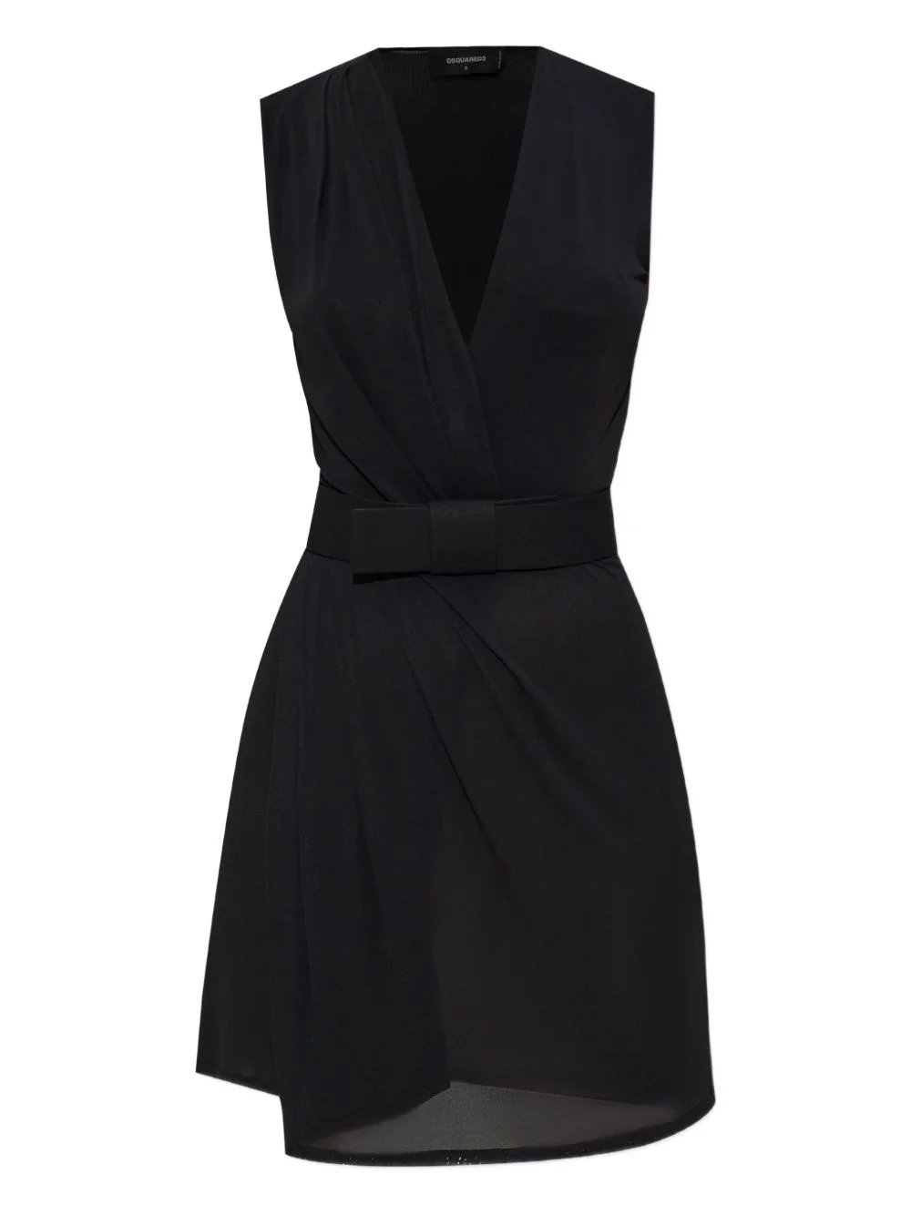 wrap belted dress Highlights - Black - Wrap design - Deep v-neckline - Belted waist - Sleeveless - Asymmetric hem Made in Italy Composition Viscose 95%, Elastane 5% Washing instructions Read Manufacturer Guidelines