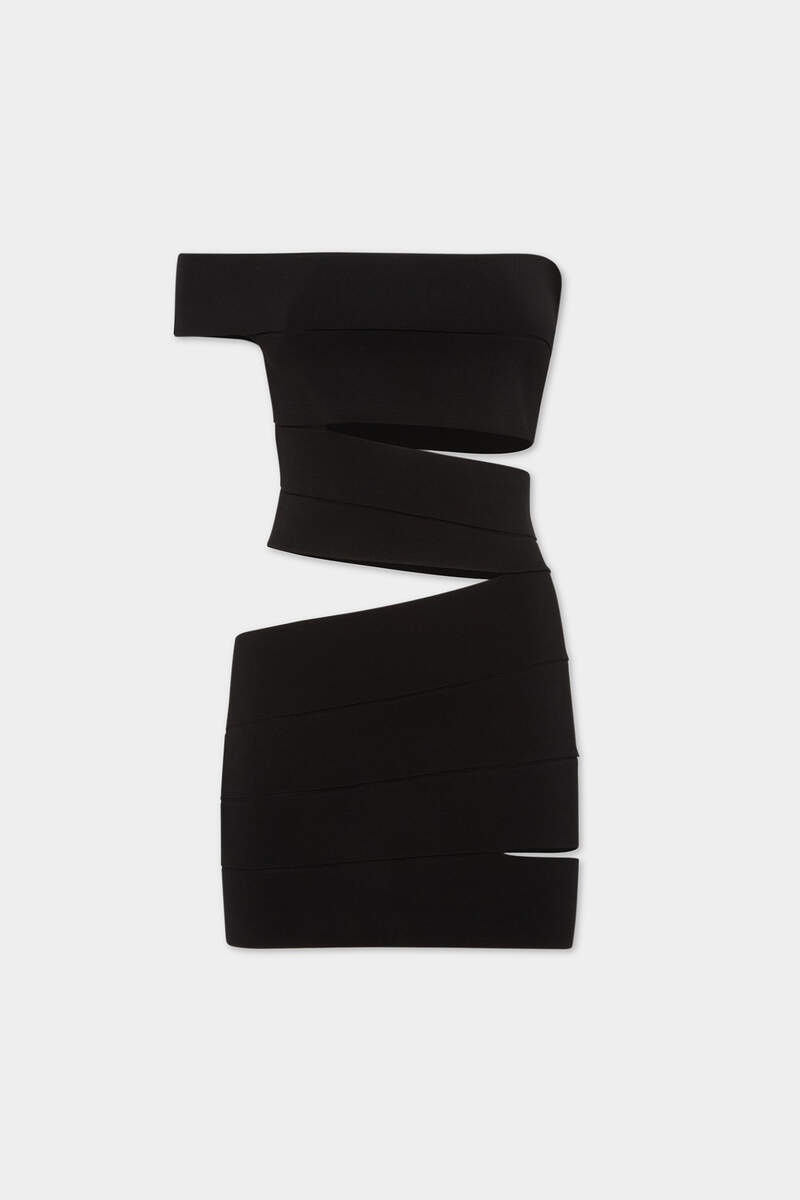 - MADE FROM STRETCH COTTON - BANDAGE WRAP DESIGN - ONE-SHOULDER SILHOUETTE - METAL LOGO PLAQUE PRIMARY FABRIC 67% COTTON 31% POLYAMIDE-NYLON 2% ELASTANE-SPANDEX Sometimes less is more and this knit mini dress is proof, flaunting a one shoulder silhouette that flashes hints of skin with a daring bandage-style design. Just add strappy sandals and you're good to go.