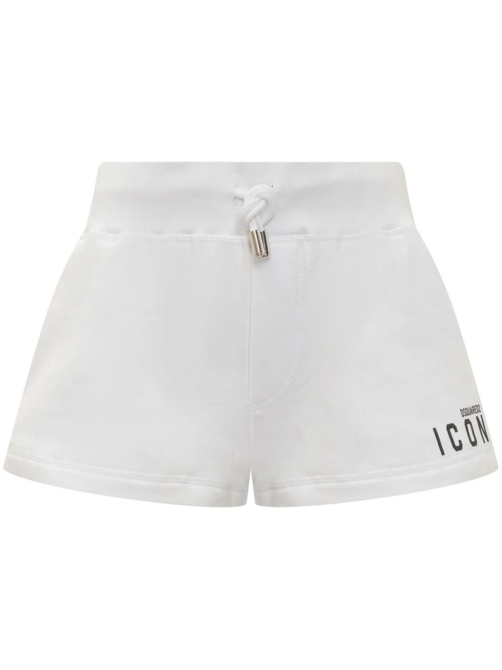 Icon track shorts Highlights - White - Cotton - Elasticated drawstring waistband - Text print - Logo print to the front - Thigh-length Made in Italy Composition Cotton 100% SIZE & FIT FittingInformation Designed for a slim fit with a close-fitting internal layer The elasticated waist allows for a comfortable fit Made from a midweight non-stretch fabric, this piece offers minimal elasticity when worn