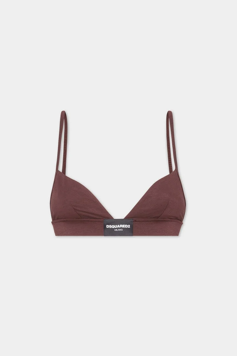 - PRODUCT ID : D8R105980ISA01502 - MADE FROM STRETCH MODAL - TRIANGLE STYLE - FRONT DSQUARED2 MILANO PATCH - ADJUSTABLE CLIP CLOSURE 95% MODAL, 5% ELASTANE Buttery soft modal jersey and a simple triangle silhouette: this non-wired bra is the perfect blend of cool and comfy. Embellished with a Dsquared2 Milano label on the band for a signature touch.