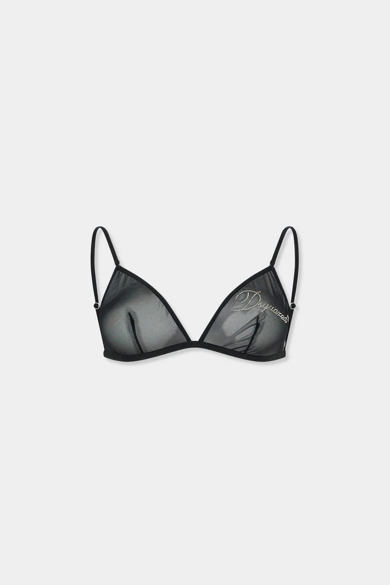 - PRODUCT ID : D8R026180ISA01001 - MADE FROM SHEER STRETCH NYLON - ADJUSTABLE STRAPS - ADJUSTABLE CLIP CLOSURE - CRYSTAL DSQUARED2 LOGO 80% POLYAMIDE/NYLON, 20% ELASTANE Special occasions call for special undies. This bra is made from sheer skin-bearing nylon, embellished with a Dsquared2 embroidered logo in glittery yarn.