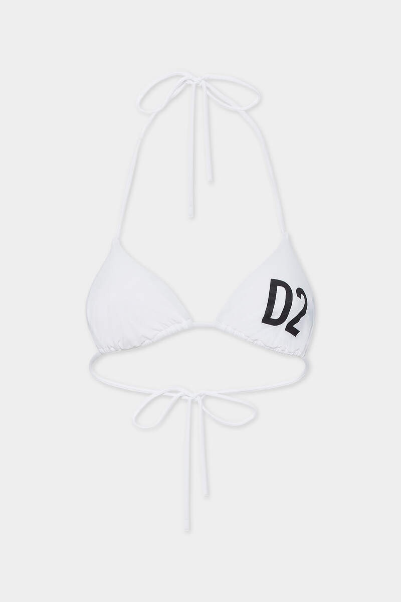 - MADE FROM LYCRA - TRIANGLE STYLE - NECK AND BACK TIES - D2 PRINT 72% POLYAMIDE, 28% ELASTANE Sometimes less is more, and this triangle bikini top is proof, flaunting thin ties for a barely-there look and minimal tan lines. Embellished with a maxi D2 print for an exclusive touch.