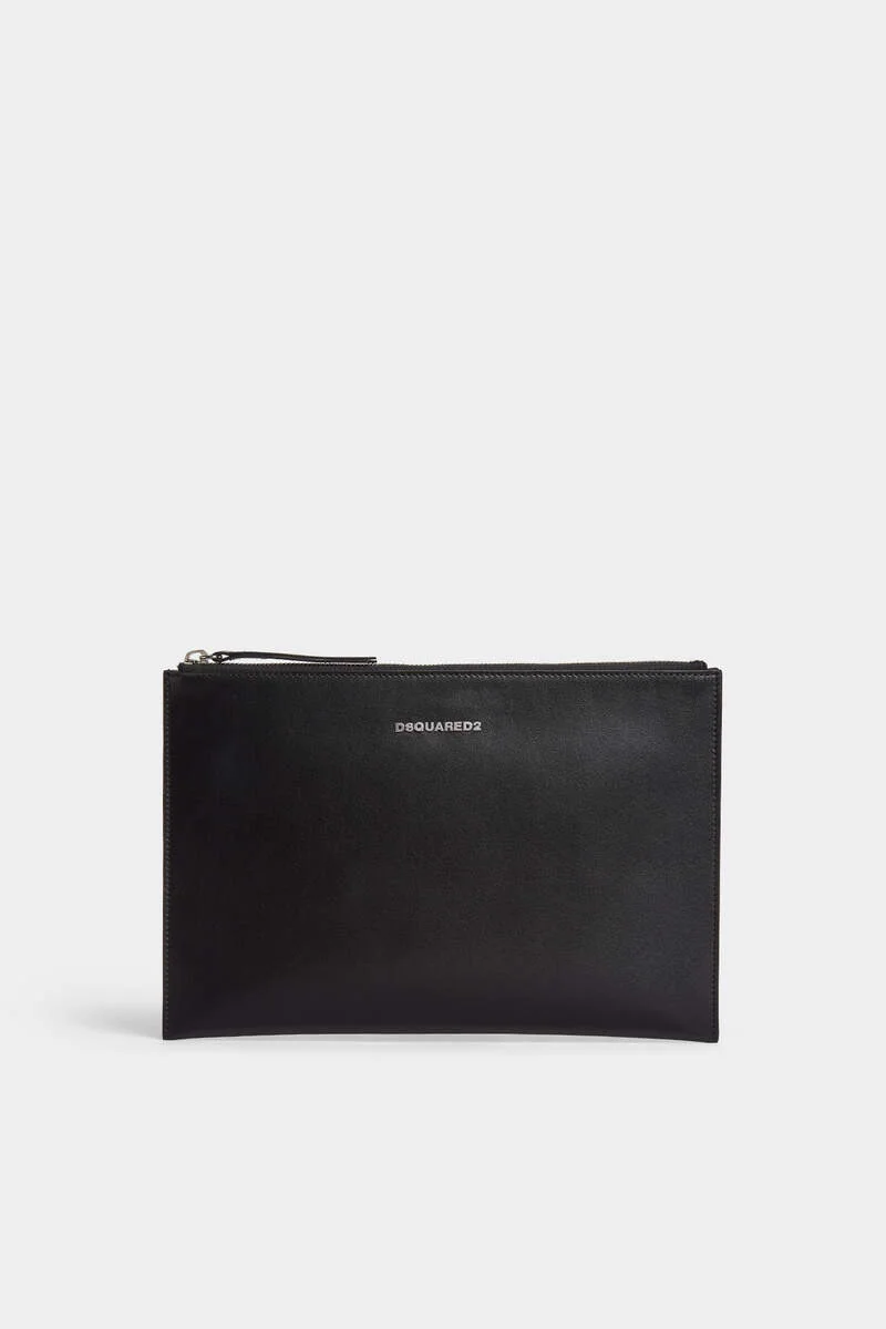- PRODUCT ID : POW0062015000012124UN - MADE FROM LEATHER - ZIP CLOSURE - METAL DSQUARED2 LETTERING PRIMARY FABRIC: 100% CALF LEATHER Keep it sleek with this leather clutch: your new go-to evening essential. The simple metal Dsquared2 lettering completes the design with the perfect balance of discreet and distinctive.