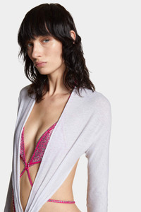- MADE FROM LIGHT JAPANESE COTTON JERSEY - LONG SLEEVES - PLUNGING FRONT - OPEN BACK - BACK TIE - DSQUARED2 PRINT PRIMARY FABRIC: 100% COTTON A plunging front and an exposed back: tap into Dsquared2's playful sensuality with this light jersey long-sleeved top. Complete with a delicate tie and a signature Dsquared2 logo on the back neck.